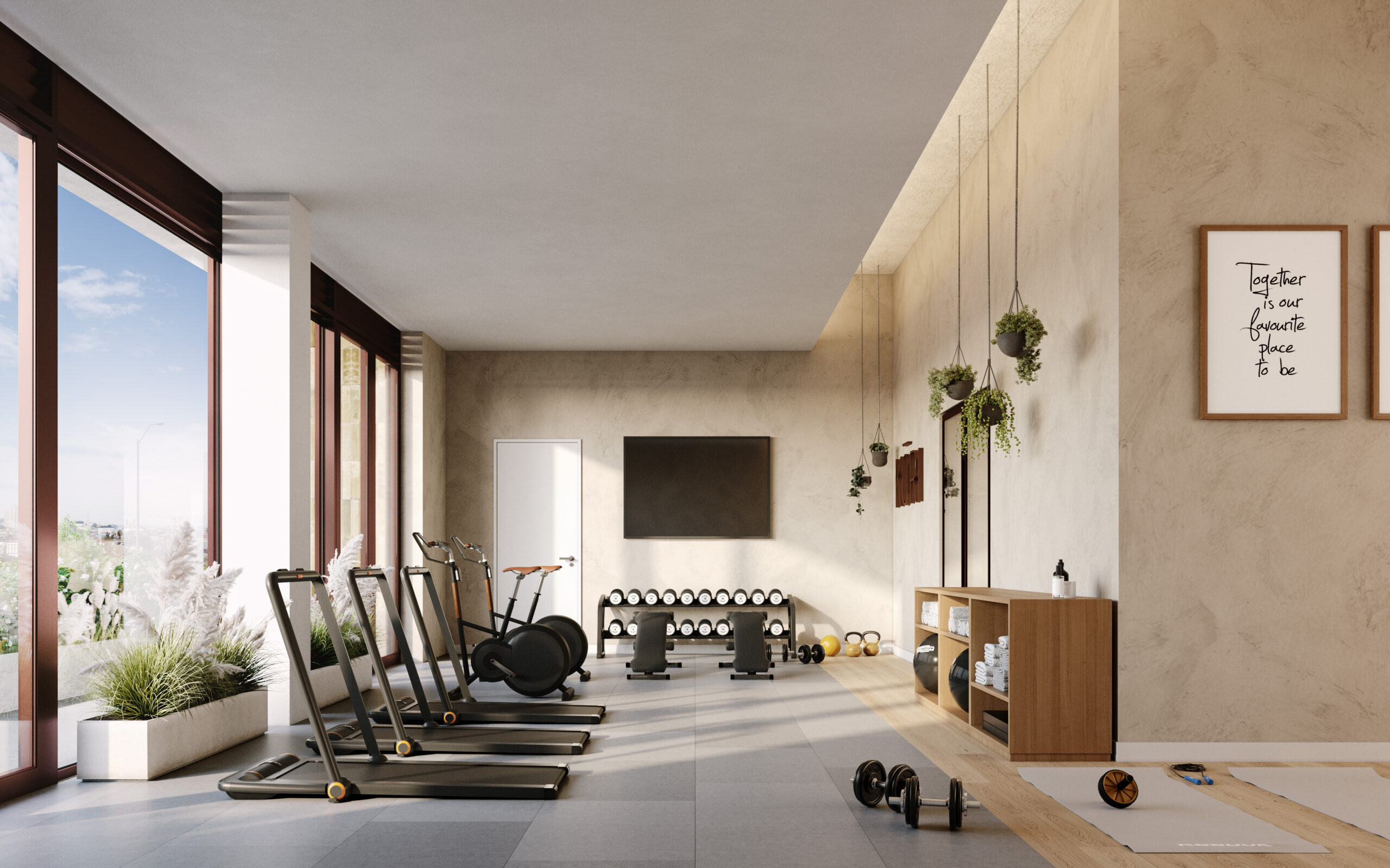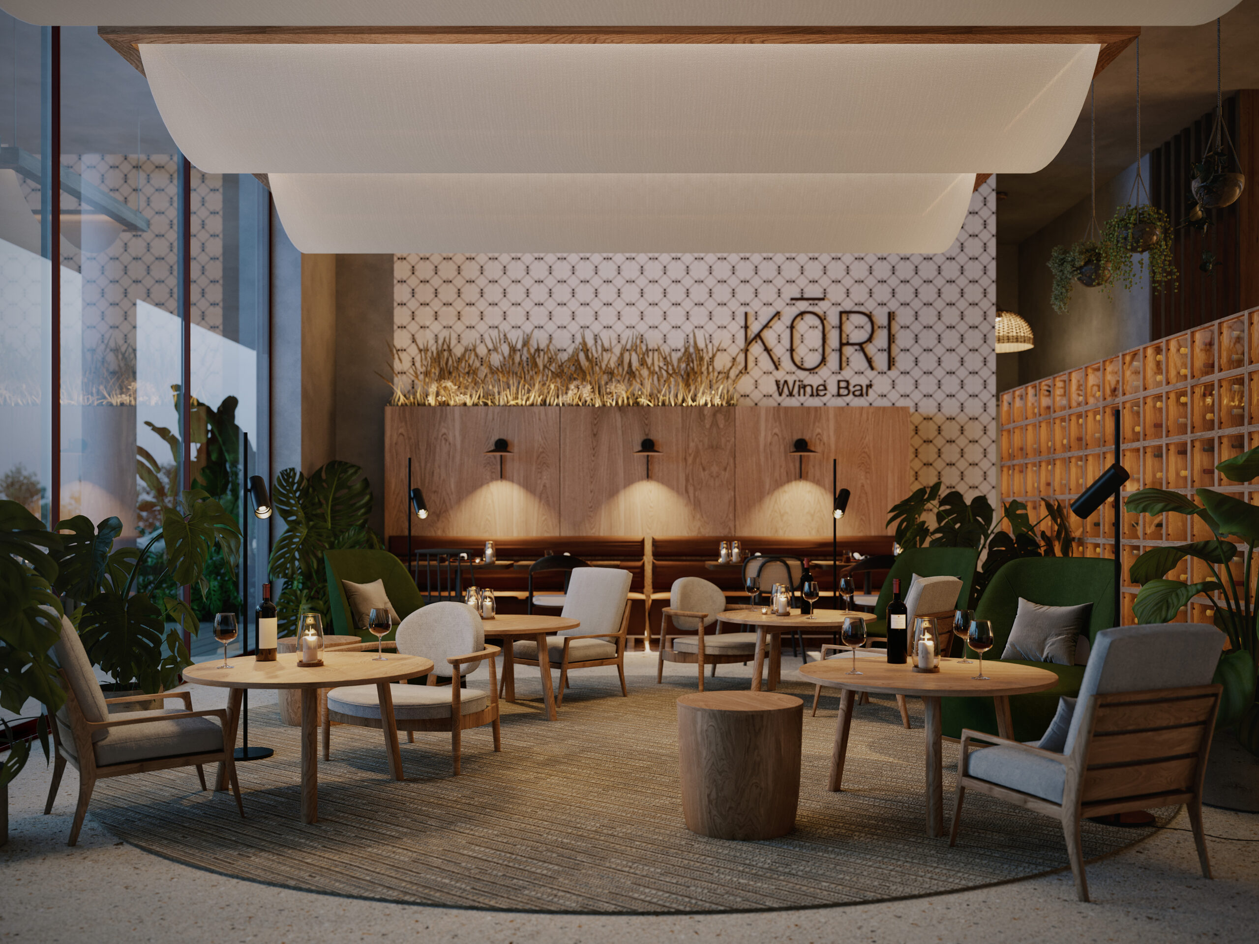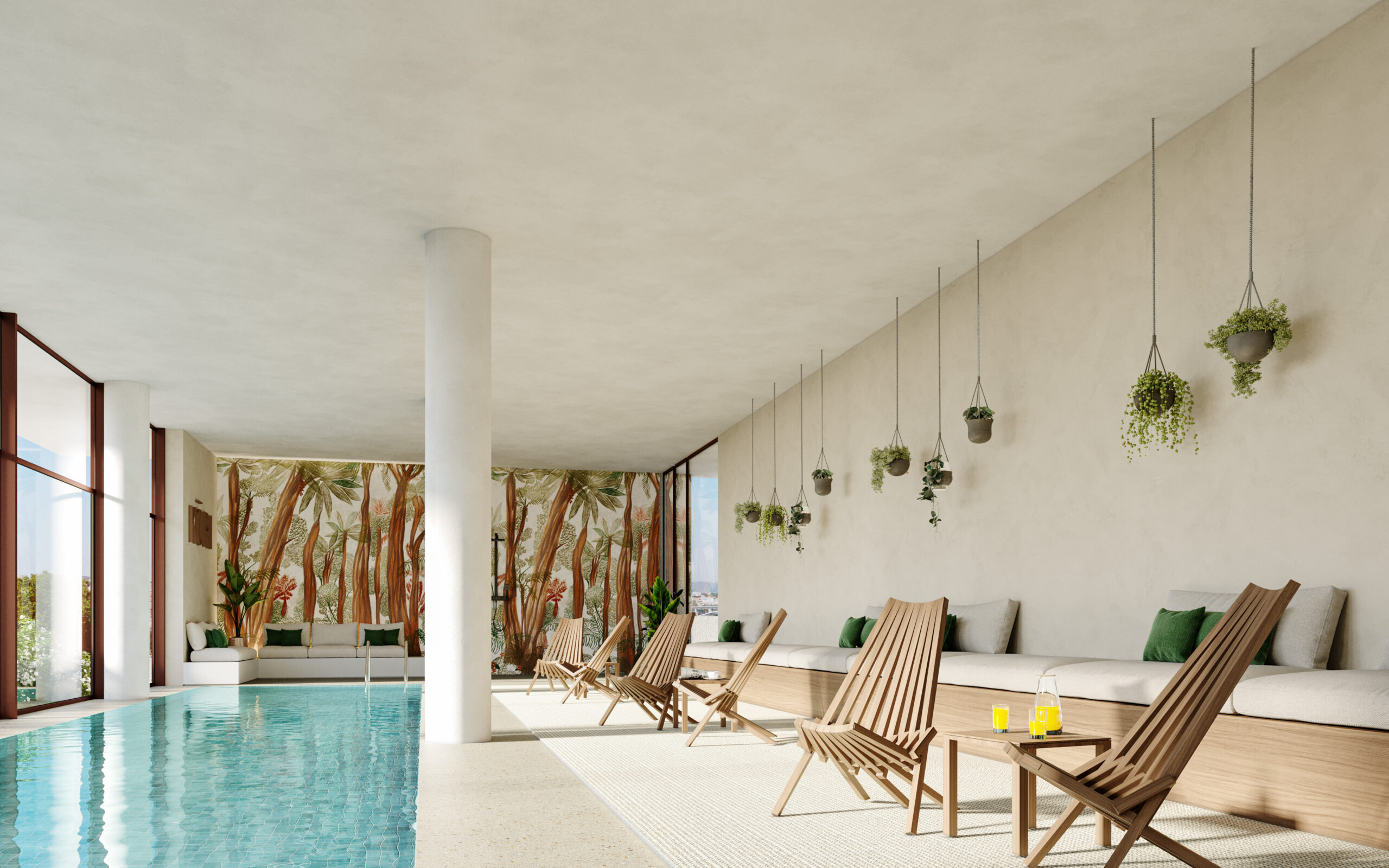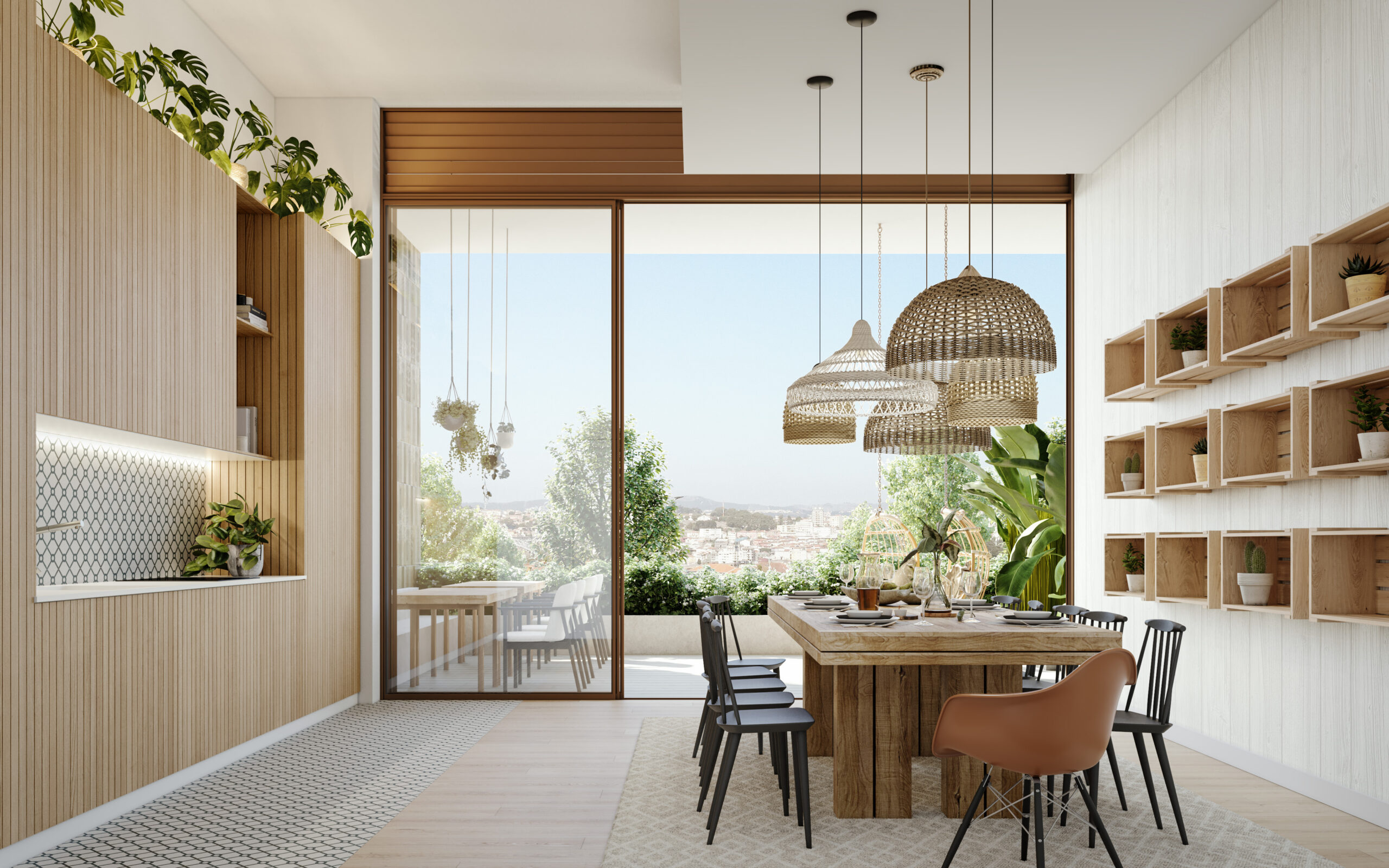 Para complementar as áreas dos apartamentos foi criado o KORI CLUB, com mais de 500 m2 de zonas de bem-estar, socialização, trabalho e lazer.