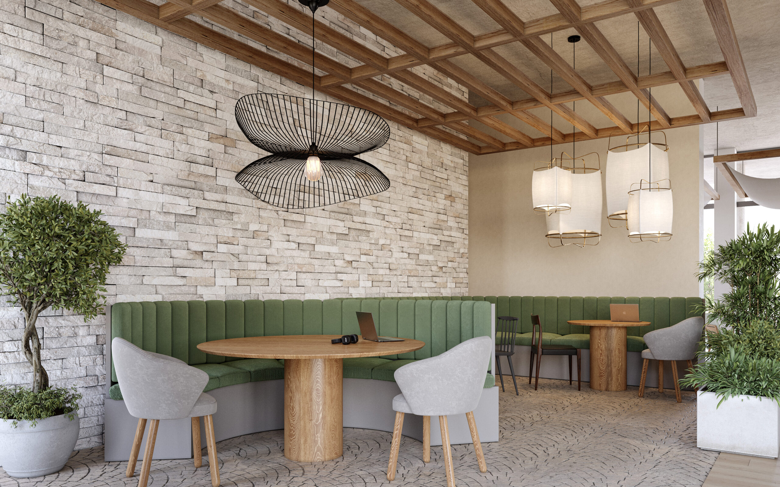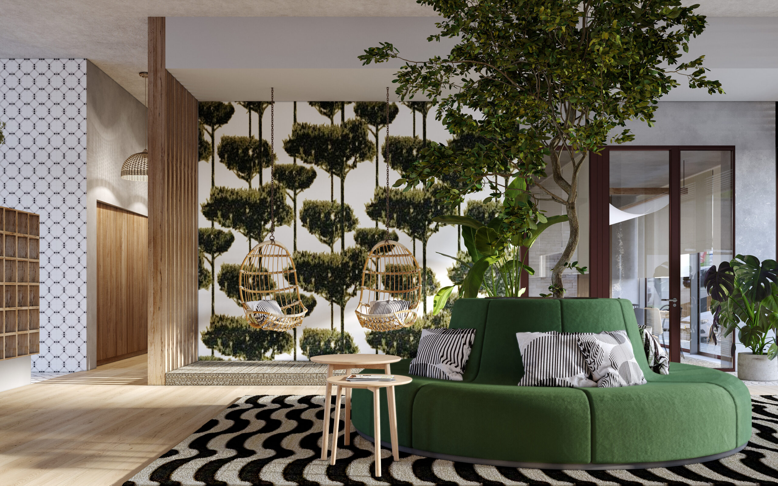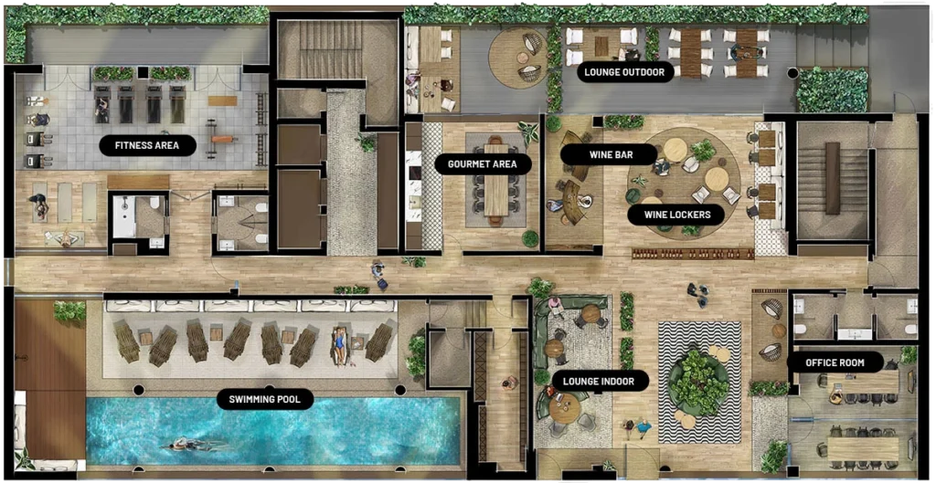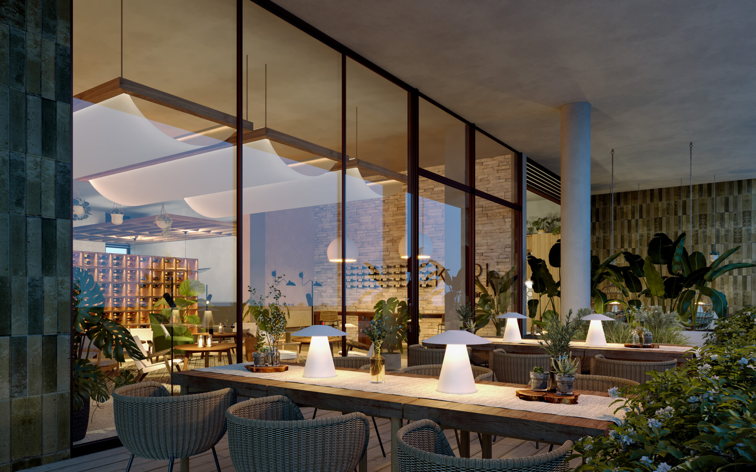 Para complementar as áreas dos apartamentos foi criado o KORI CLUB, com mais de 500 m2 de zonas de bem-estar, socialização, trabalho e lazer.